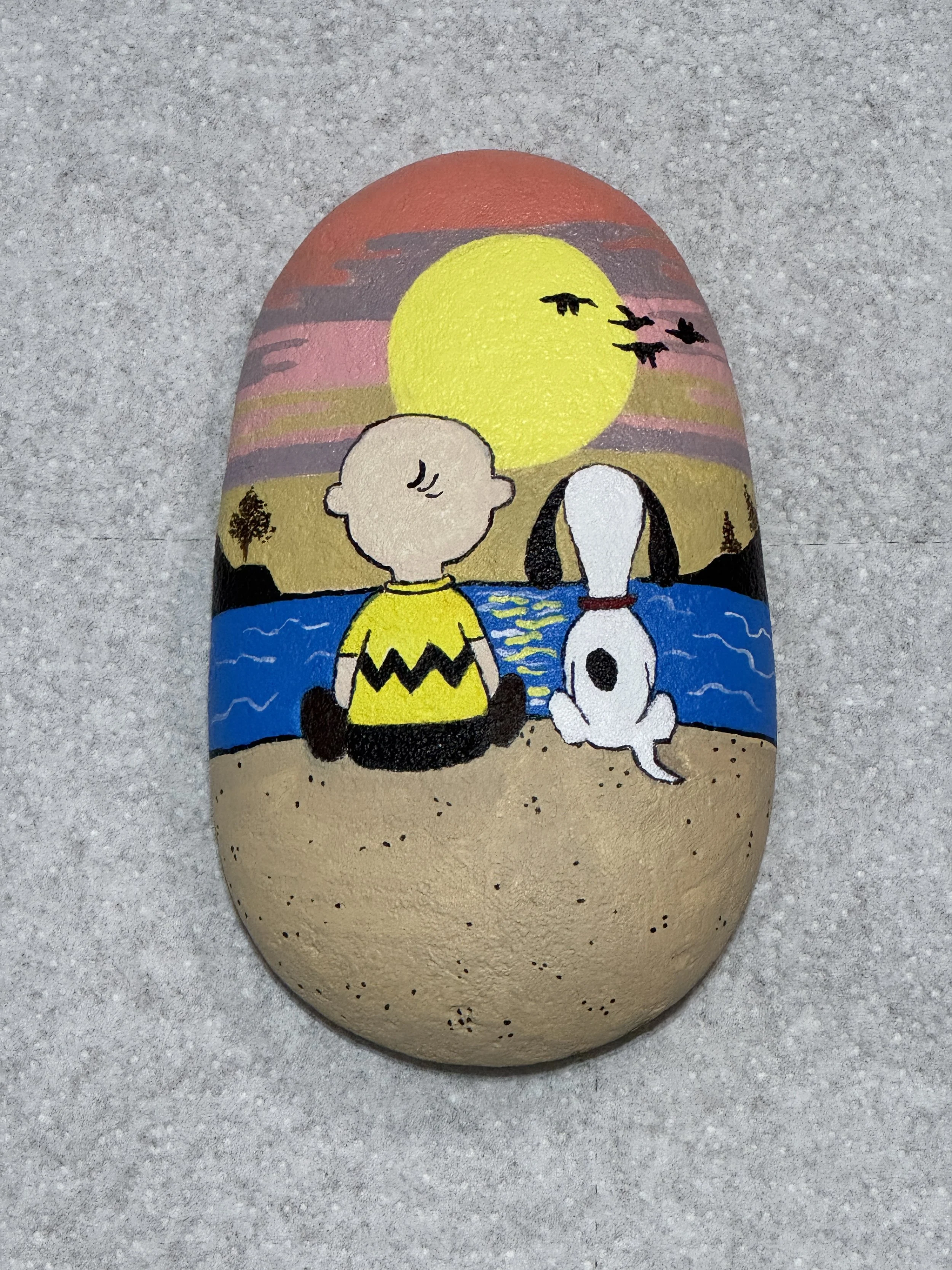 SOLD - "Sunset Together" version 1 / Acrylic on Rock / Size: X-Large