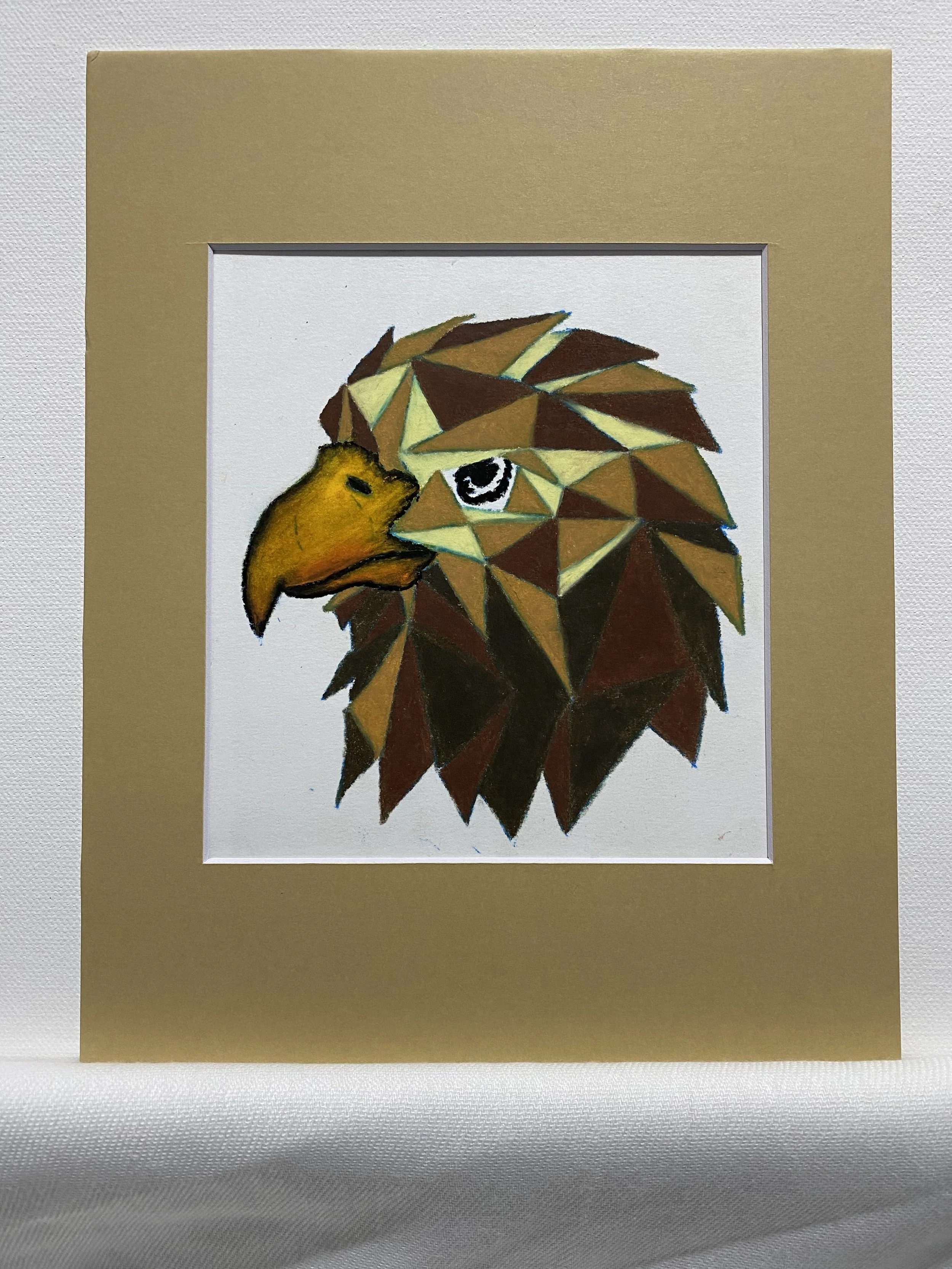 Stained Glass Style Eagle Oil Pastel on paper Matted to fit 8" x 10" frame On display at Trellis & Vine