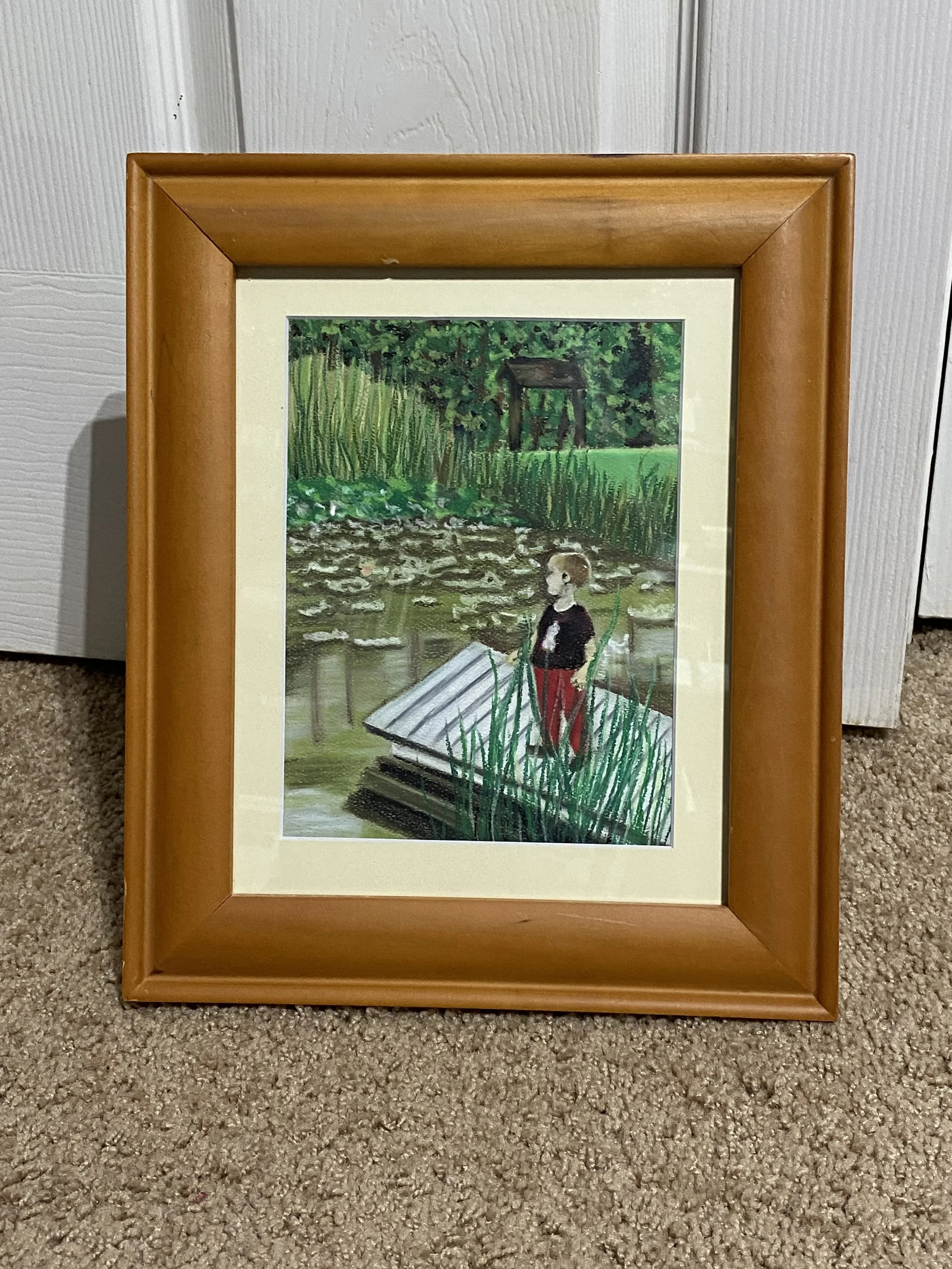 Stream Scene Oil Pastel on paper Matted to fit 8" x 10" frame On display at Trellis & Vine
